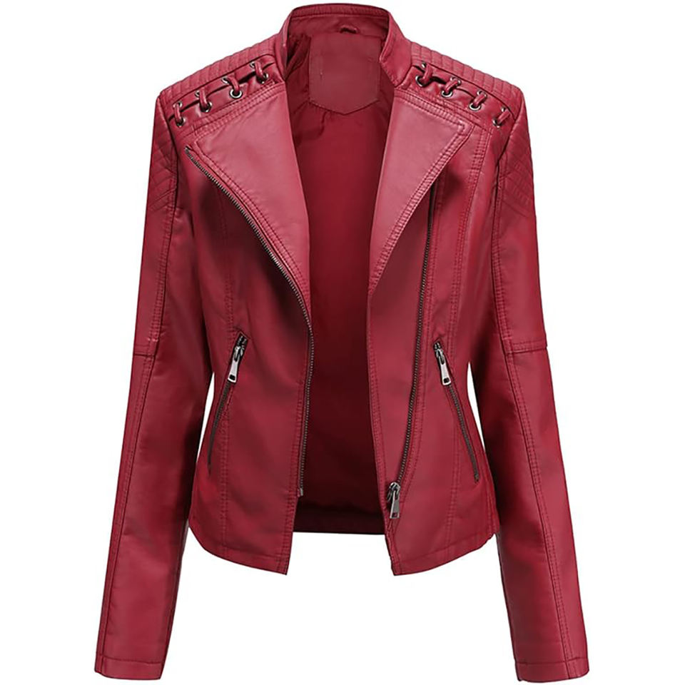Womens Motorcycle Jacket Fashion Dressy Vegan Leather Biker Coat Light Slim Fit Crop Blazer Moto Jacket