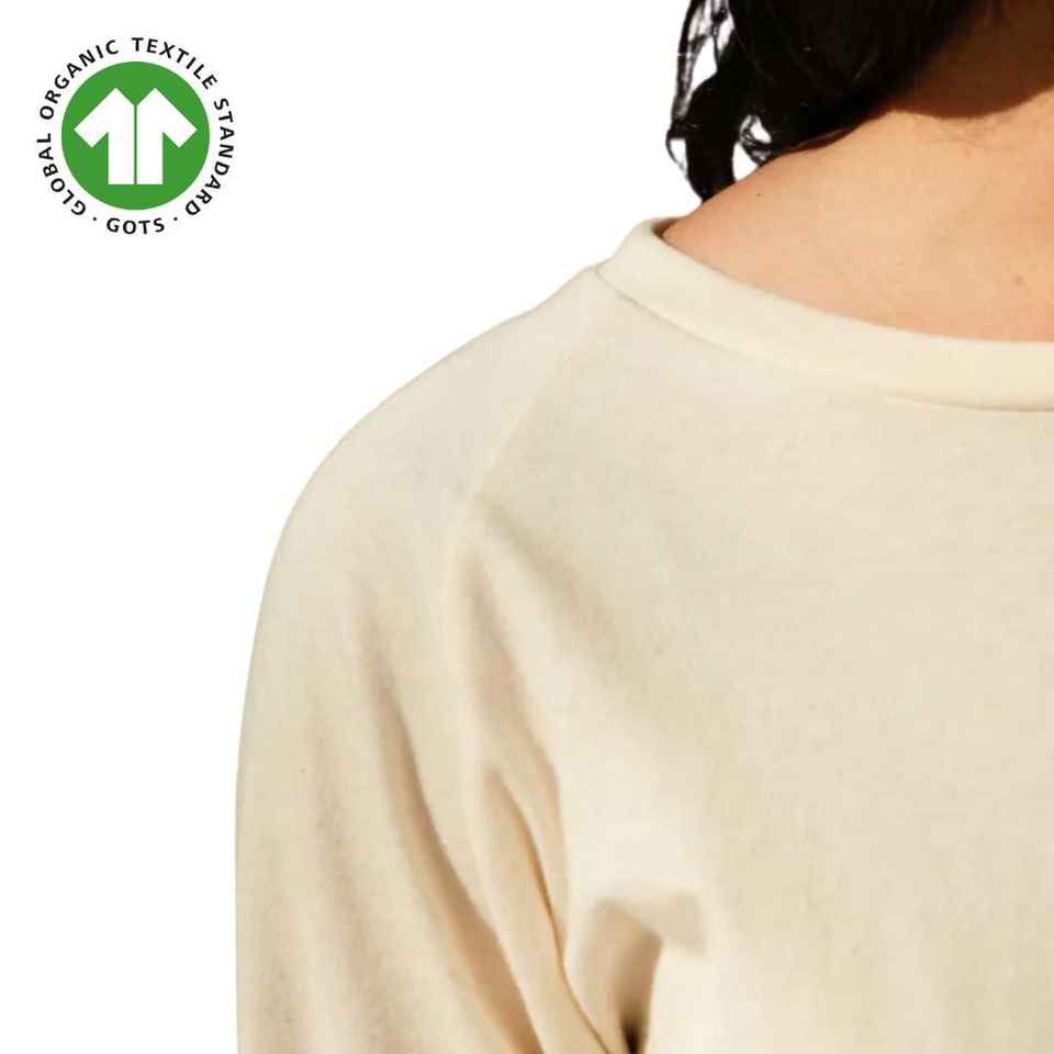 Womens Organic Cotton Raglan Sleeves T-Shirt - Natural Undyed, 4.3 oz Jersey, Cropped Sleeves, Relaxed Fit, Soft and Breathable