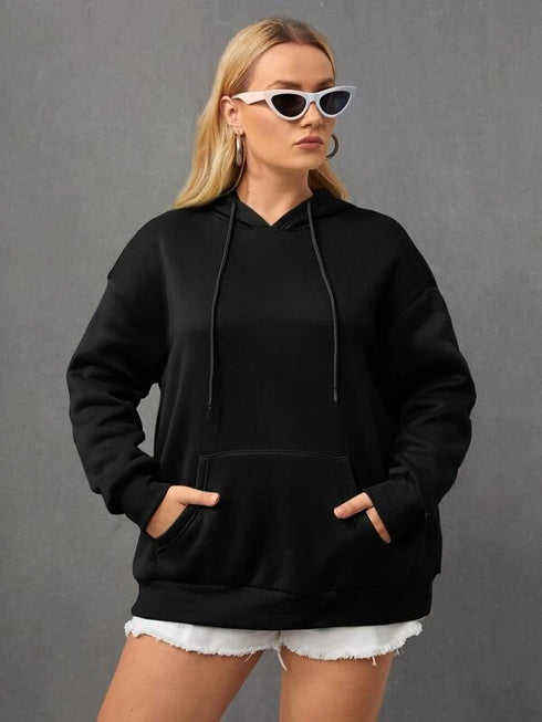 Womens Oversized Black Winter Fleece Hoodie Long Sleeve Casual Loose Fit Pullover Sweatshirt Daily Wear
