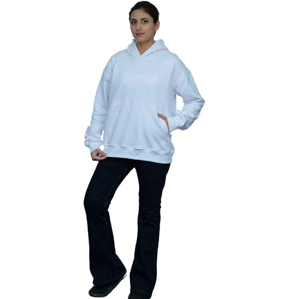 Womens Oversized Hoodie Sweatshirt in White Cozy Soft Long Sleeve Pullover Hoodie Top for Casual Wear or Layering