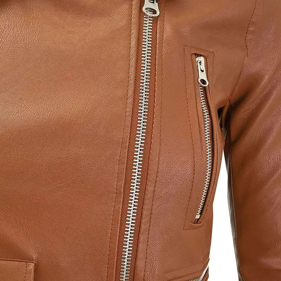 Womens Oversized Leather Blazer Trendy Sheepskin Jacket with Padded Shoulders and Notch Lapel Women Leather Jacket with Oem