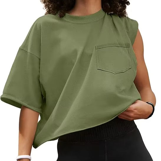 Womens Oversized T-Shirts Short Sleeve Workout Crop Tops Casual Drop Shoulder Boxy Roll Hem Basic Loose Tees