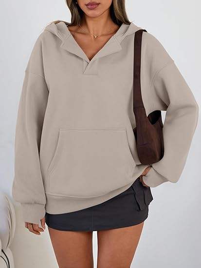 Womens Oversized V Neck Hoodies with Thumb Hole Pullover Sweatshirts Y2k Clothes Fall Fashion Outfits 2026