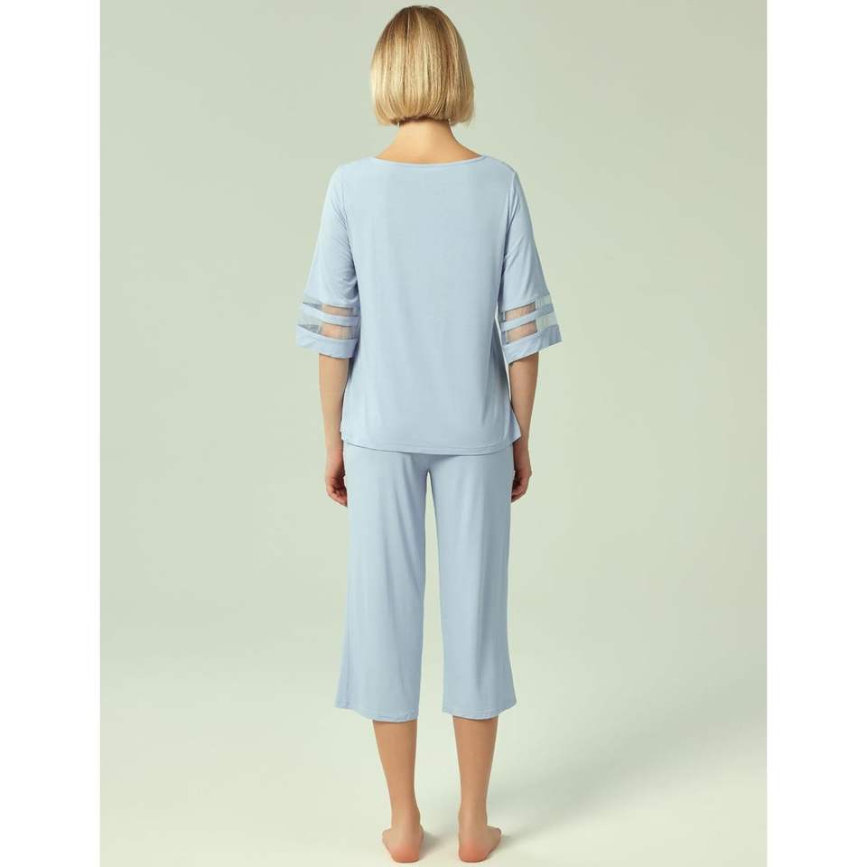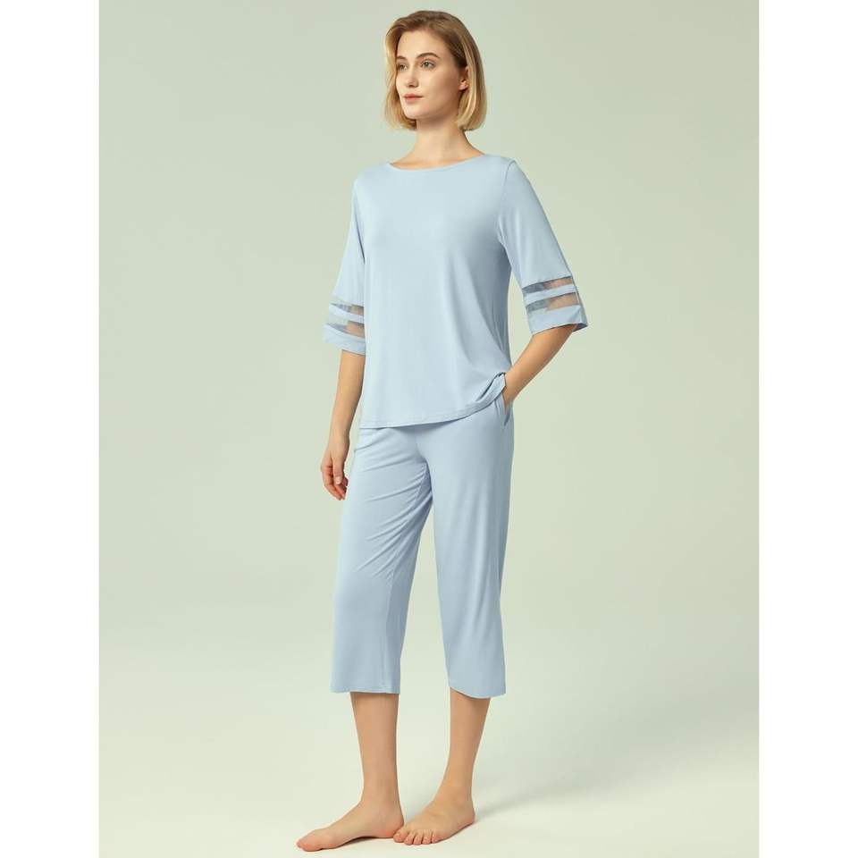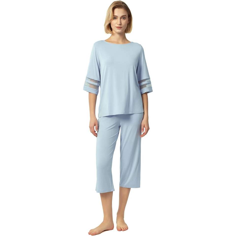 Womens Pajama Set Viscose Bamboo 3/4 Sleeve Capri Soft 2 Piece Sleepwear Lounge Set Custom Women's Sleepwear Pj Sets