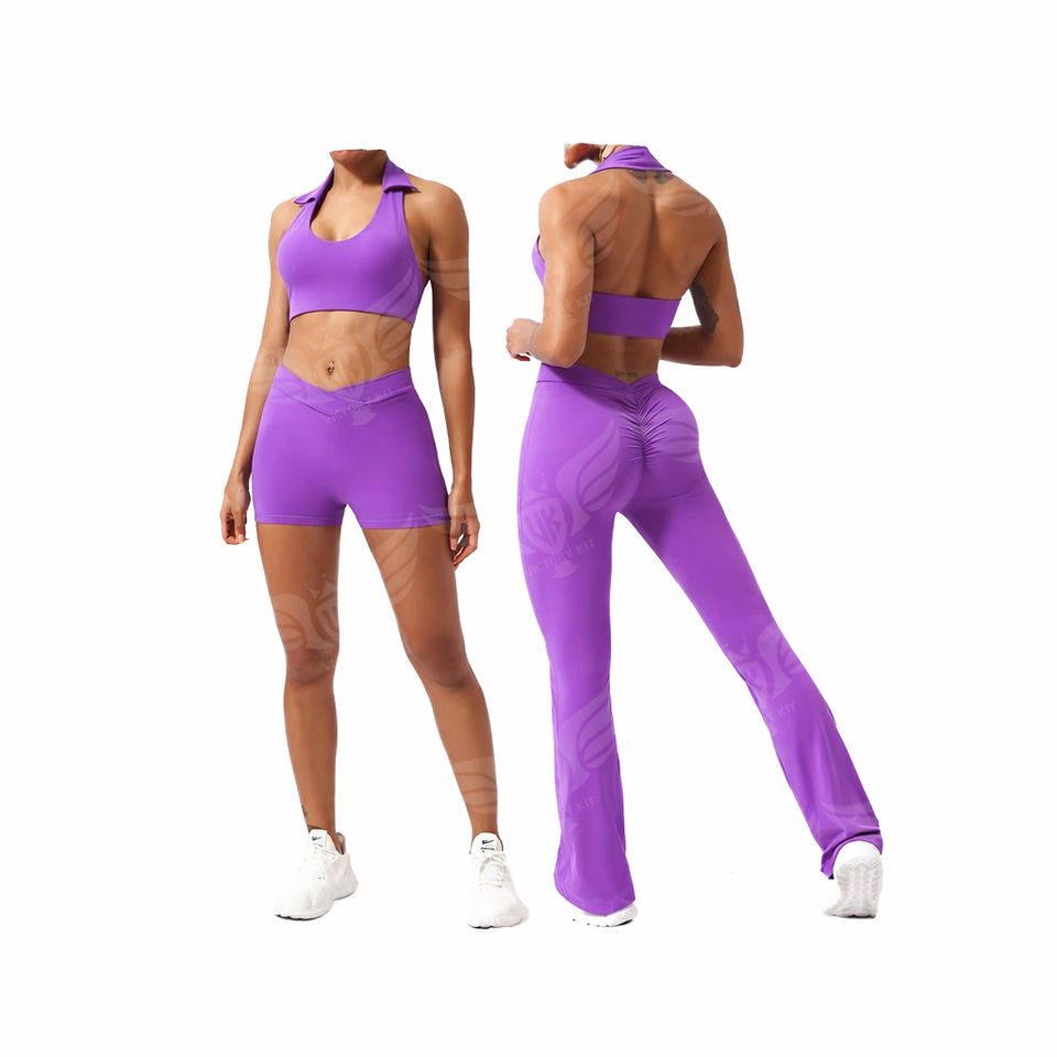 Product Type:3-Piece Activewear Set (Halter Sports Bra + Shorts + Flare Leggings)