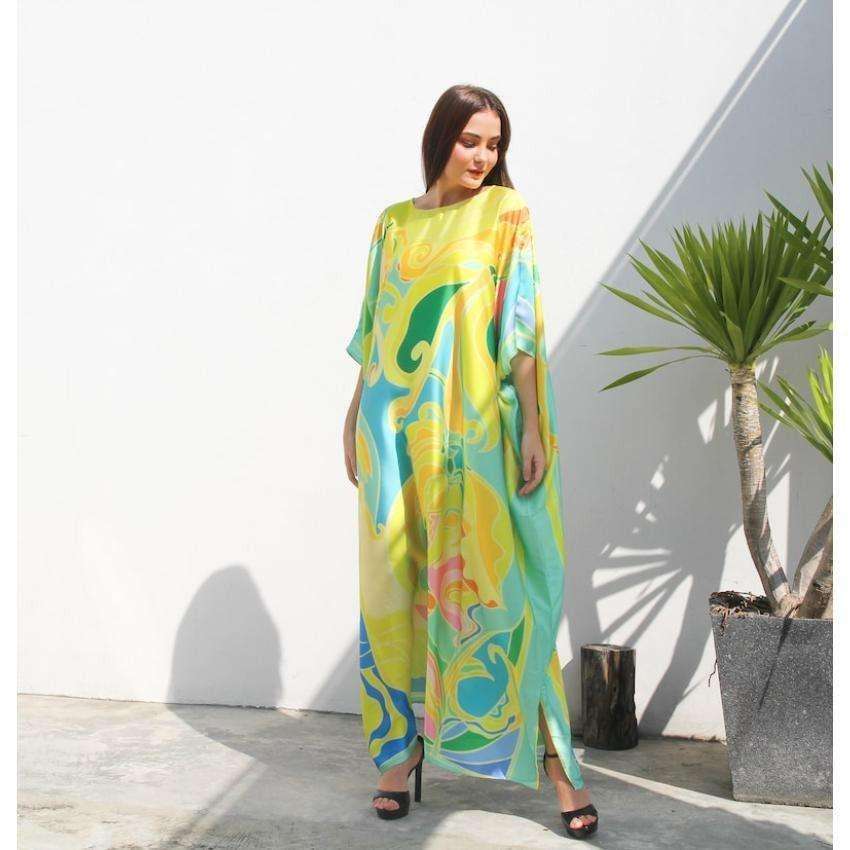 Womens Printed Kaftan Maxi Dress Loose Fit Batwing Sleeve Long Dress Summer Resort Beach Wear