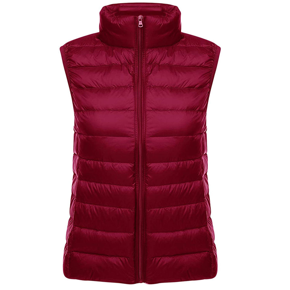 Womens Puffer Vest Sleeveless Lightweight Winter warm padded Jackets Quilted Zip Up Stand Collar Shiny Padded Outerwear Vests