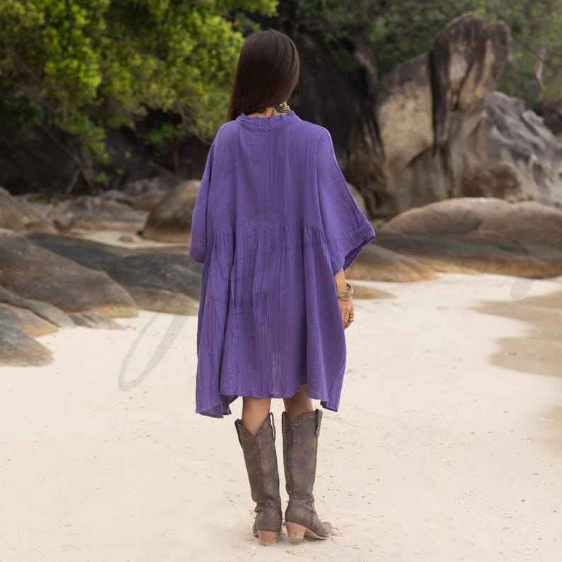 Womens Purple Oversized Cotton Button Up Boho Beach Cover Up Dress Made In India