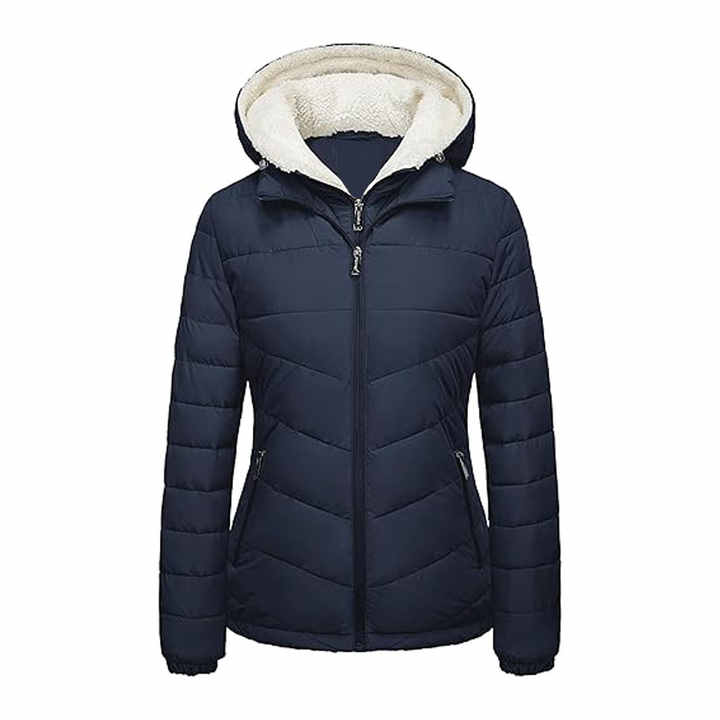 Womens Quilted Winter Coat with Hood Warm Puffer Jacket Featuring Soft Fleece Lining Insulated Outerwear Cold Weather Casual