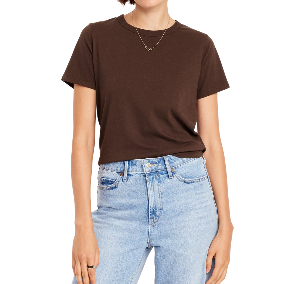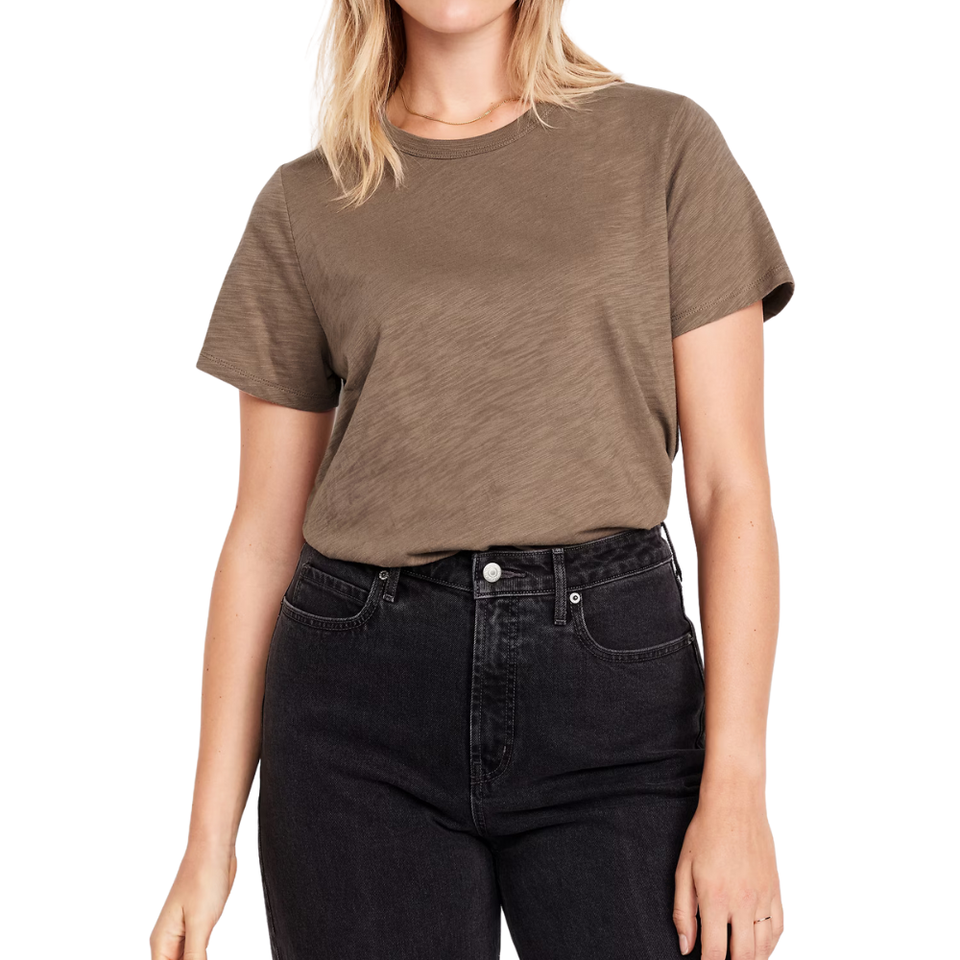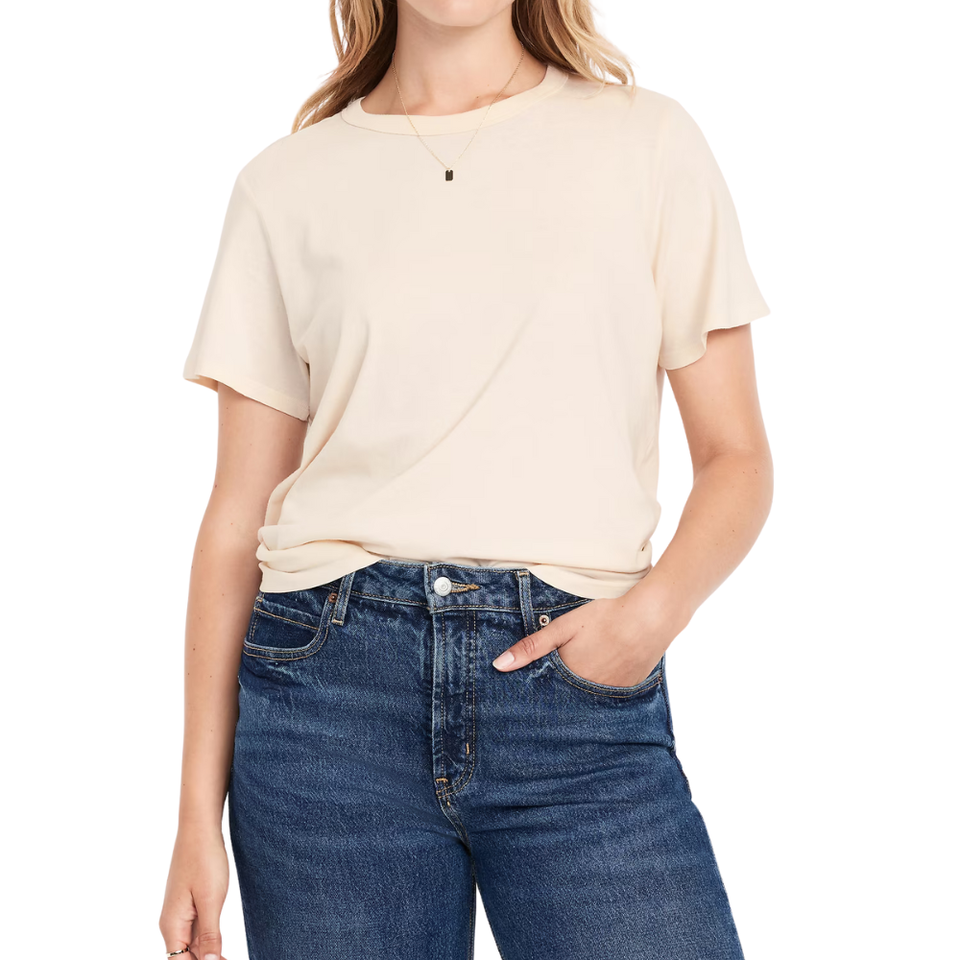 Womens Regular Fit Cream T Shirt Womens Casual Solid Crew Neck Short Sleeve Top