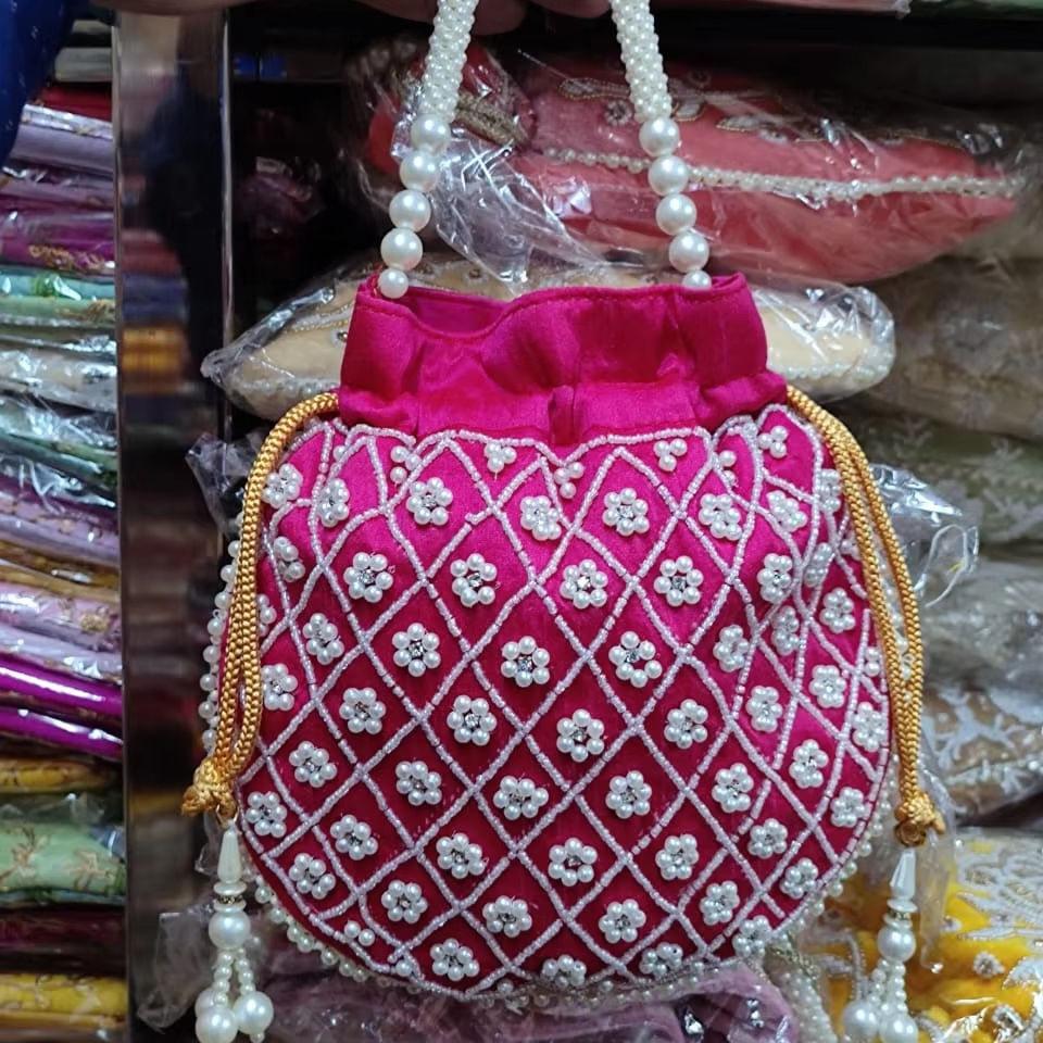 Pearl n Beads Embellished Potli With Rope Handle