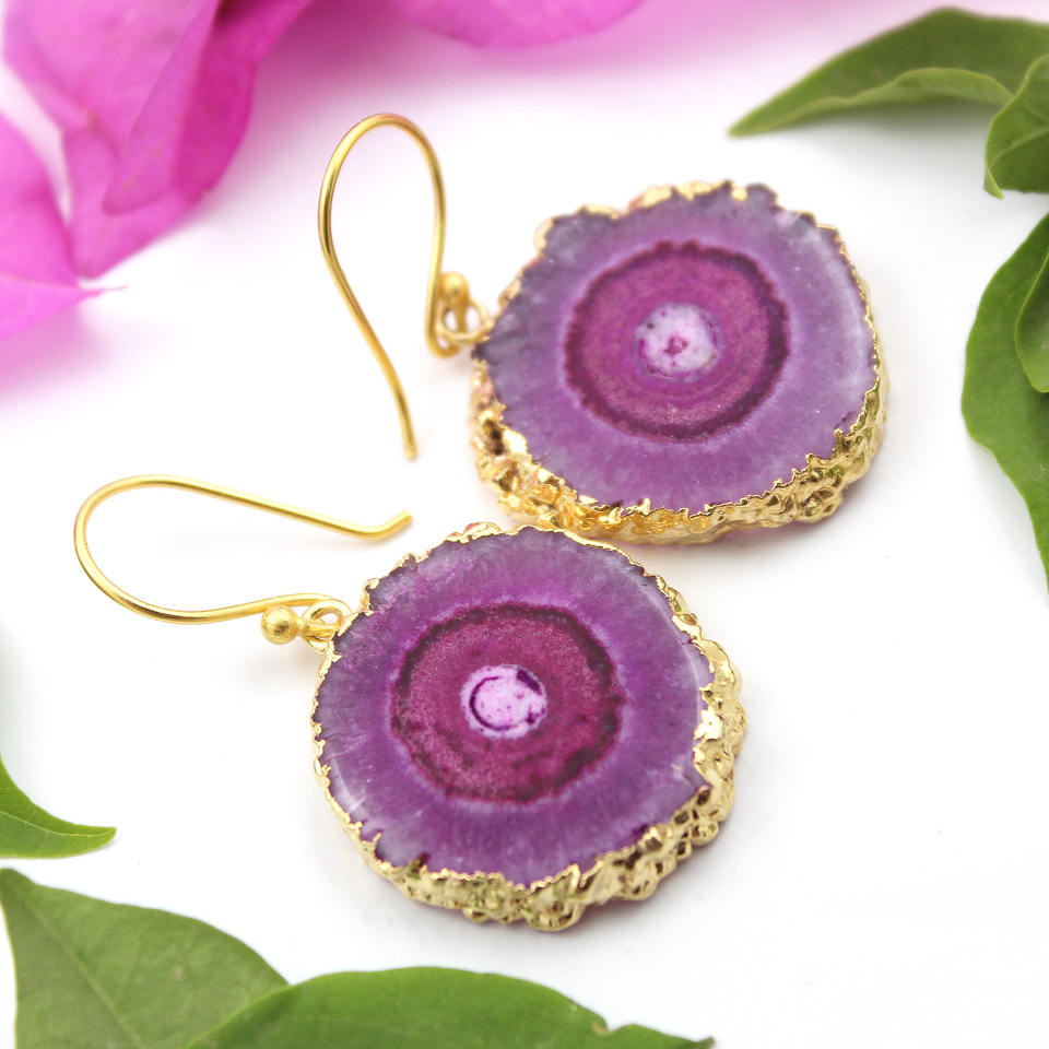 Womens Royal Fashion Natural Solar Quartz Flower Shape 24K Gold Electroplated Drop Earring For Girls Wholesale Jewelry For India