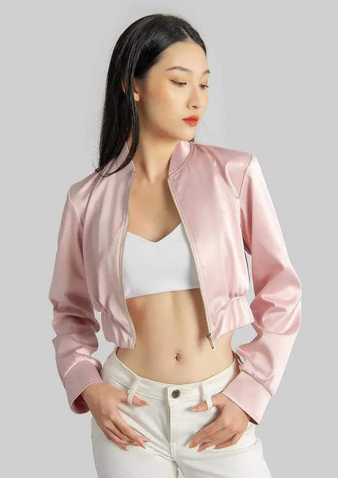 Womens Satin Varsity Jacket Stand Collar Comfortable Nylon Lining Customizable Color Stylish New Arrival