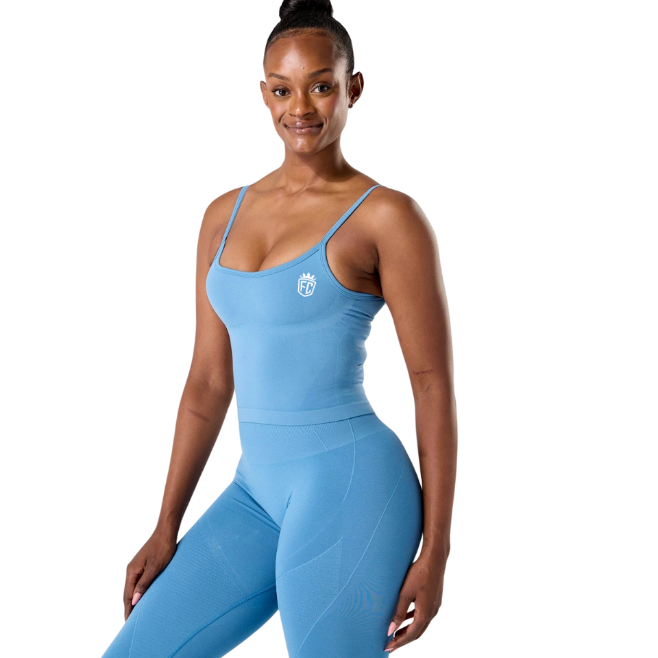 Womens Seamless Support Tank Coastal Blue Built In Bra Low Impact Stretch Fit Yoga Gym Training Activewear Top