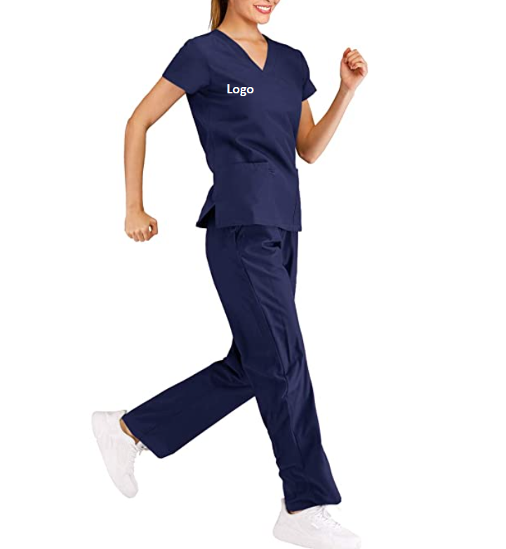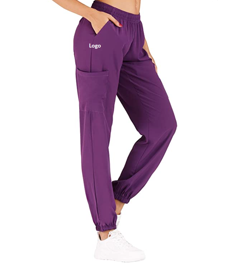Womens Solid Stretch Medical Uniform Scrub Set V Neck Top Cargo Tapered Jogger Pants Wholesale Lab Coat Nurse Suit