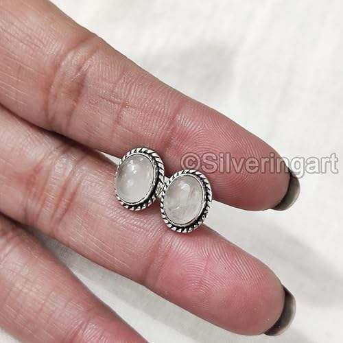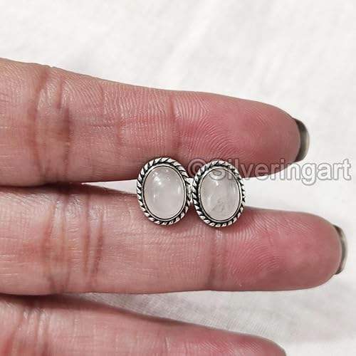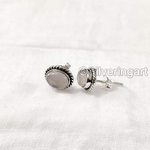 Womens Stud Earring Natural Rose Quartz Gemstone Bohemian Studs Earring Handmade Jewelry 925 Sterling Silver Stud Earring