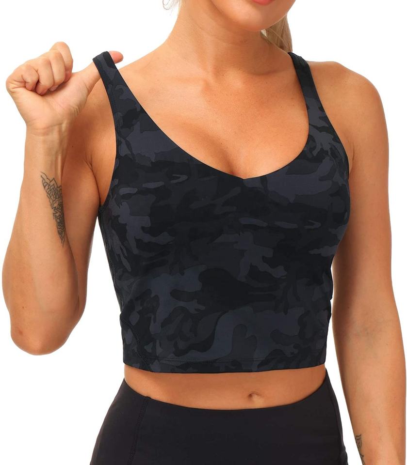 Womens Sublimated Camouflage Longline Sports Bra Padded Yoga Bras Gym Running Workout Tank Tops