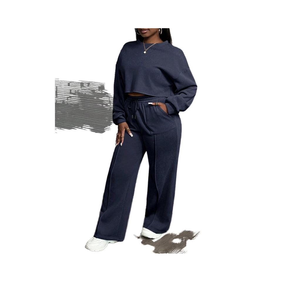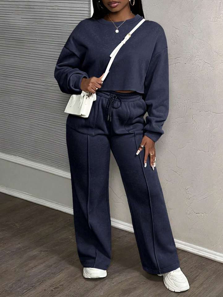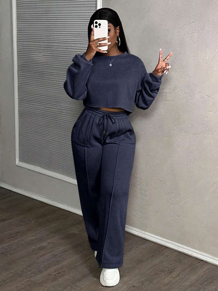 Womens Two Piece Lounge Set Cropped Sweatshirt And Wide Leg Pants Casual Comfortable Matching Outfit