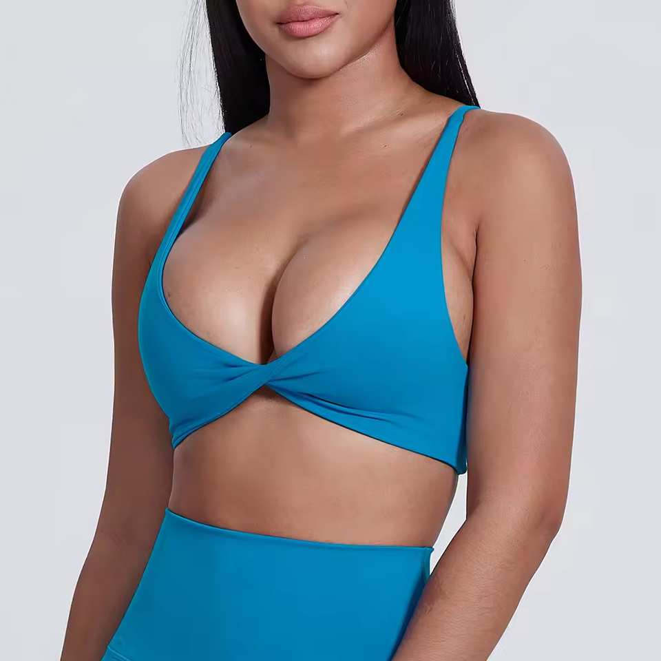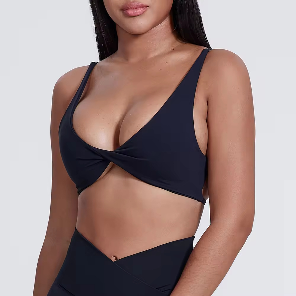 Womens V Neck Twist Front Design Yoga Crop Tops Cross Cross Back Gym Fitness Sport Bra