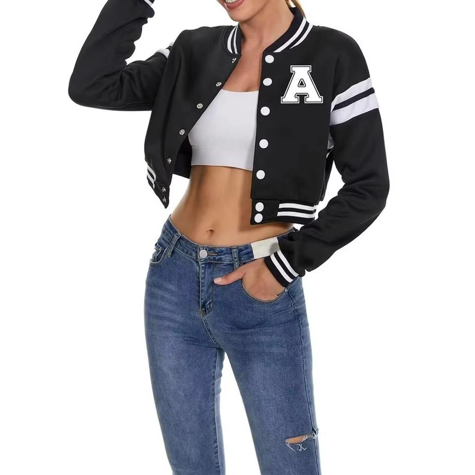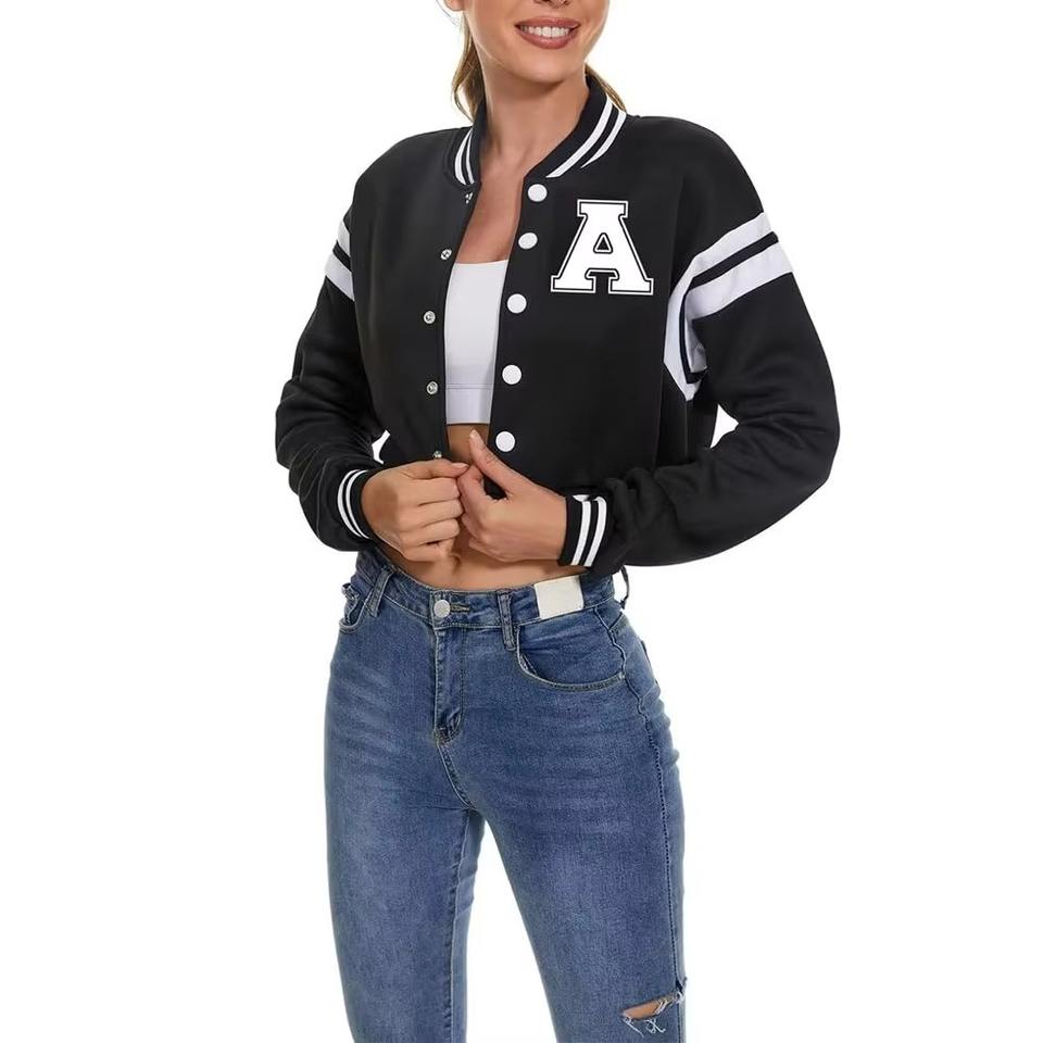 Product name:Womens Winter Warm Crop Varsity Jacket Full Sleeves, Breathable Canvas
