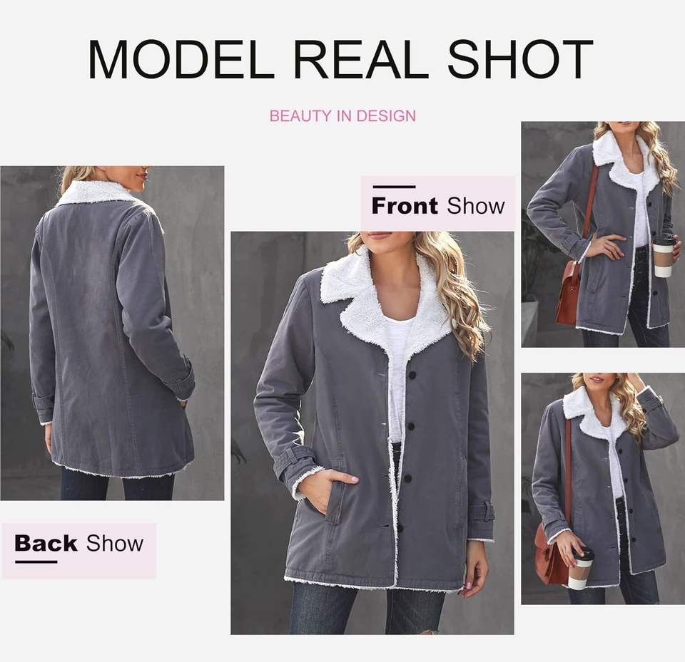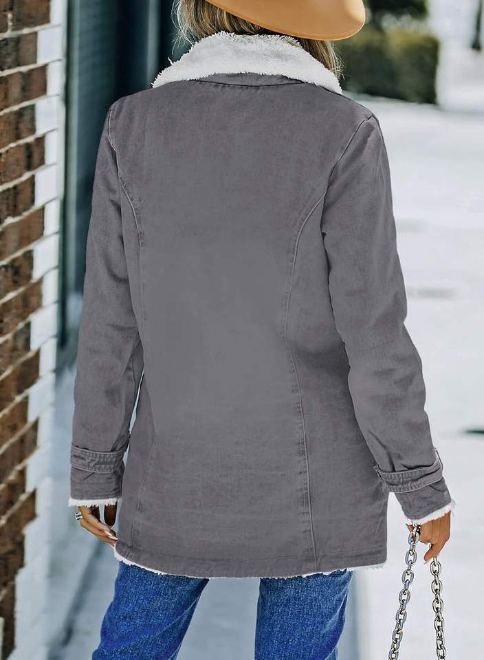 Womens Winter Warm Jean Jacket Stand Collar Wool Liner Sherpa Denim Coats Thicker Outerwear with Pockets