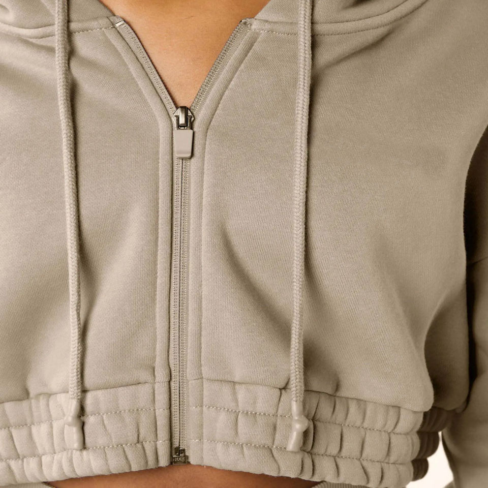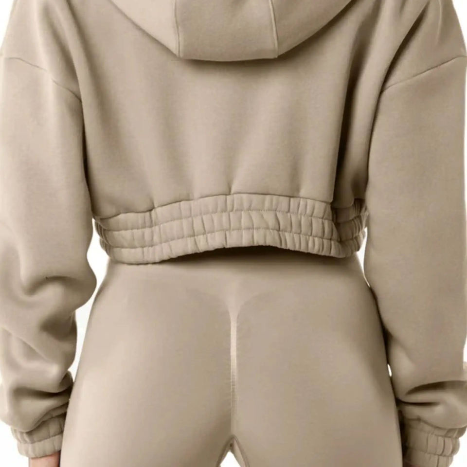 Womens Zip Up Cropped Hoodie and Leggings Set Two Piece Tracksuit Fitness Outfit Ribbed Hem Loungewear Workout Gym Wear
