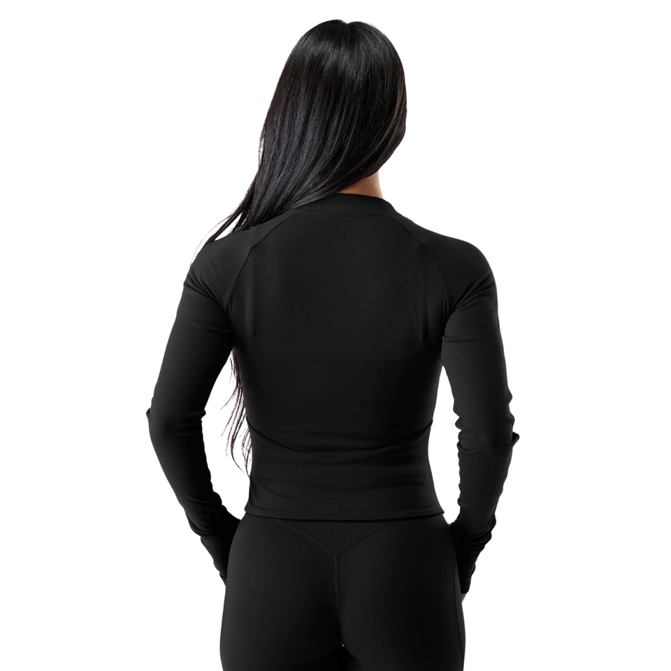 Womens Zip Up Performance Hoodie Black Long Sleeve Stretch Fit Active Yoga Gym Training Lightweight Jacket