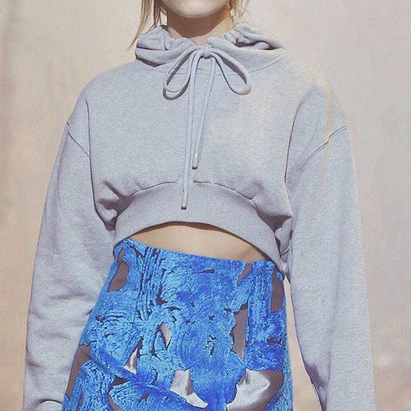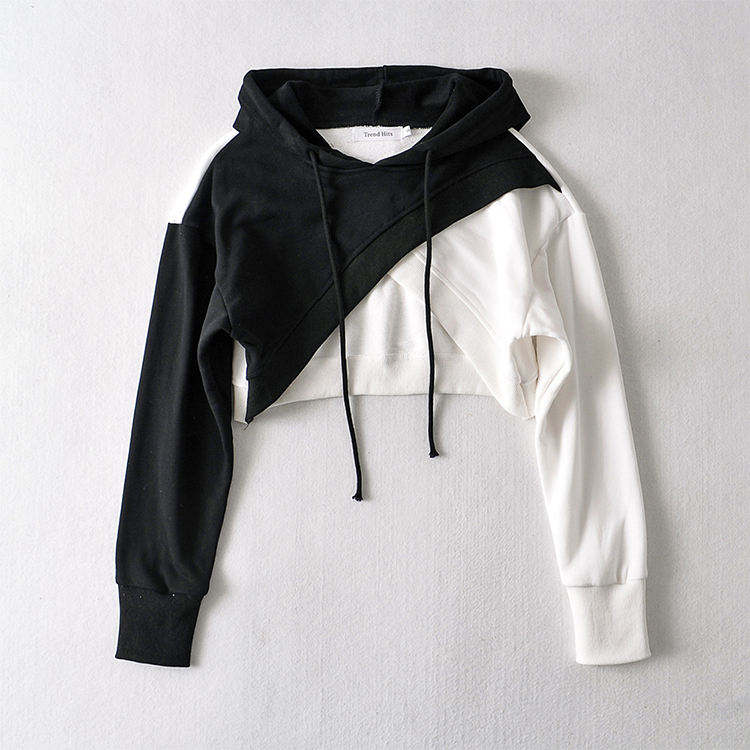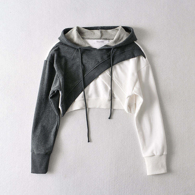 Womens baggy crop hoodie fleece fabric winter cropped hoodie solid pattern womens hoodie