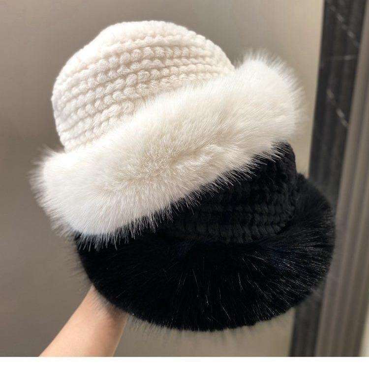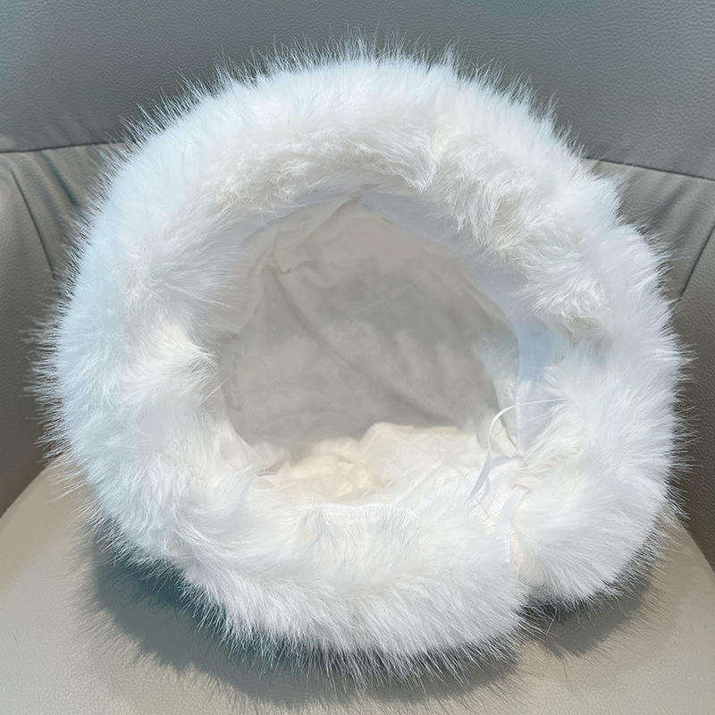 Womens luxury bucket hat thick fuzzy fisherman cap warm winter faux fox fur lightweight fluffy plush cozy casual style