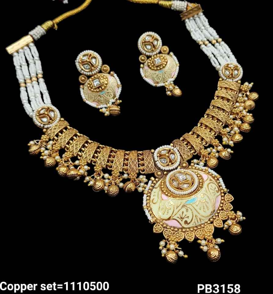 Wonderful Indian Real Kundan Premium Quality Square Shape Minakari Work Jaypuri Necklace With Pearl Drop Earrings Set For Womens