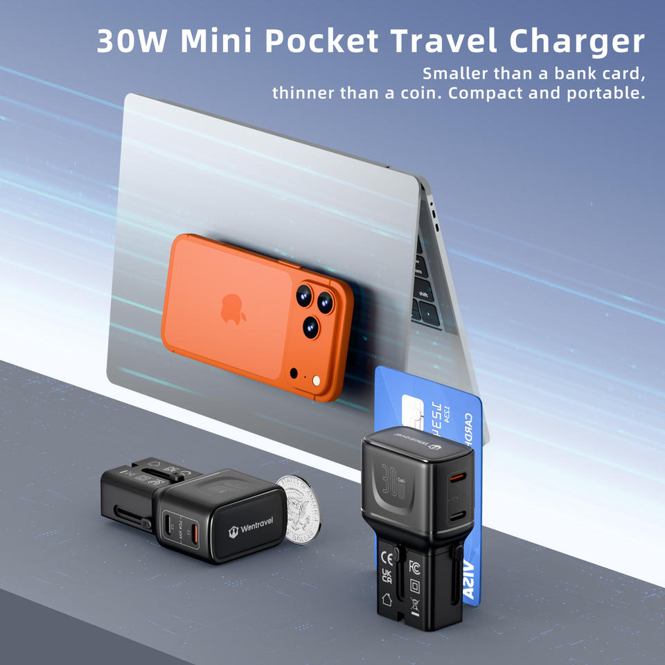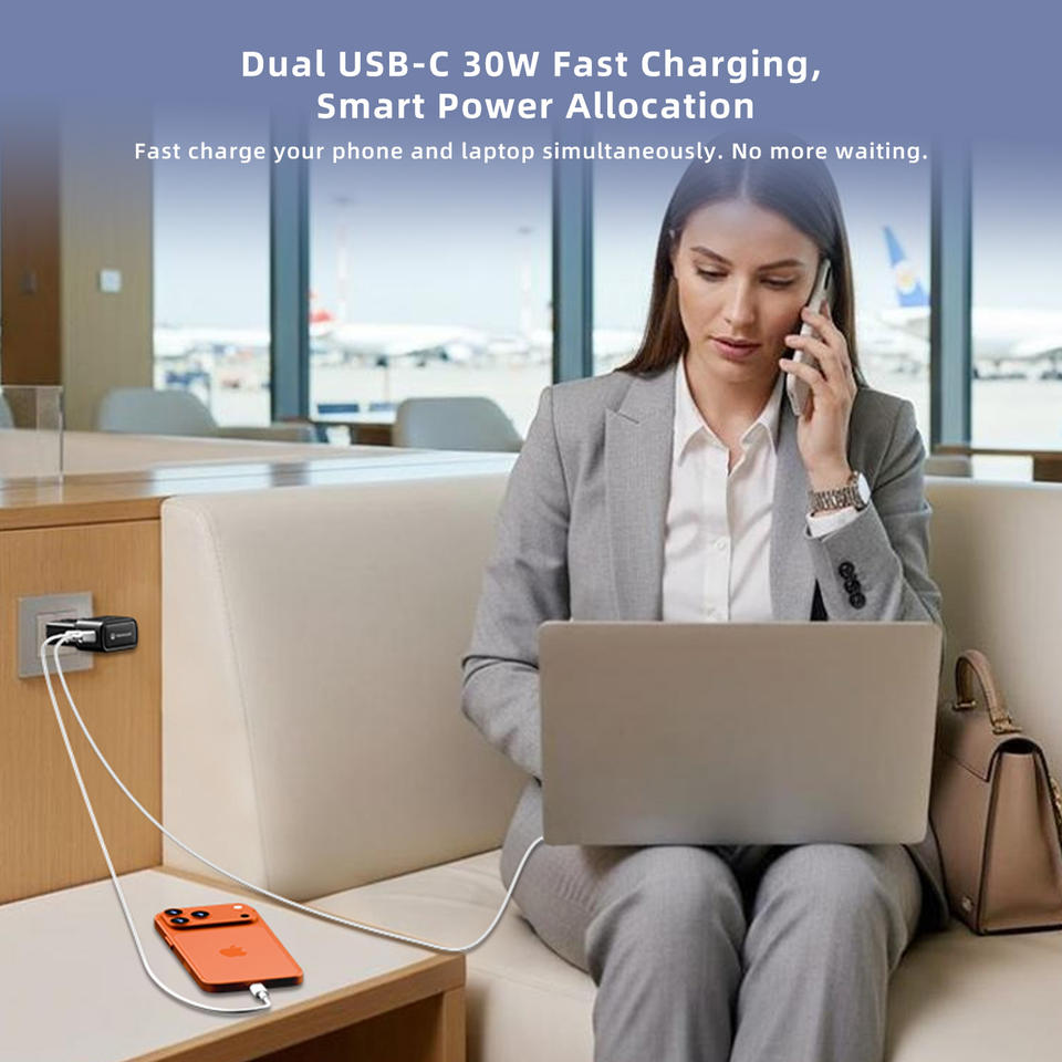 Wontravel 30W UK EU AU US 2 Type-C Ports Fast Charging Mini Travel Adapter Uk for Business Trip