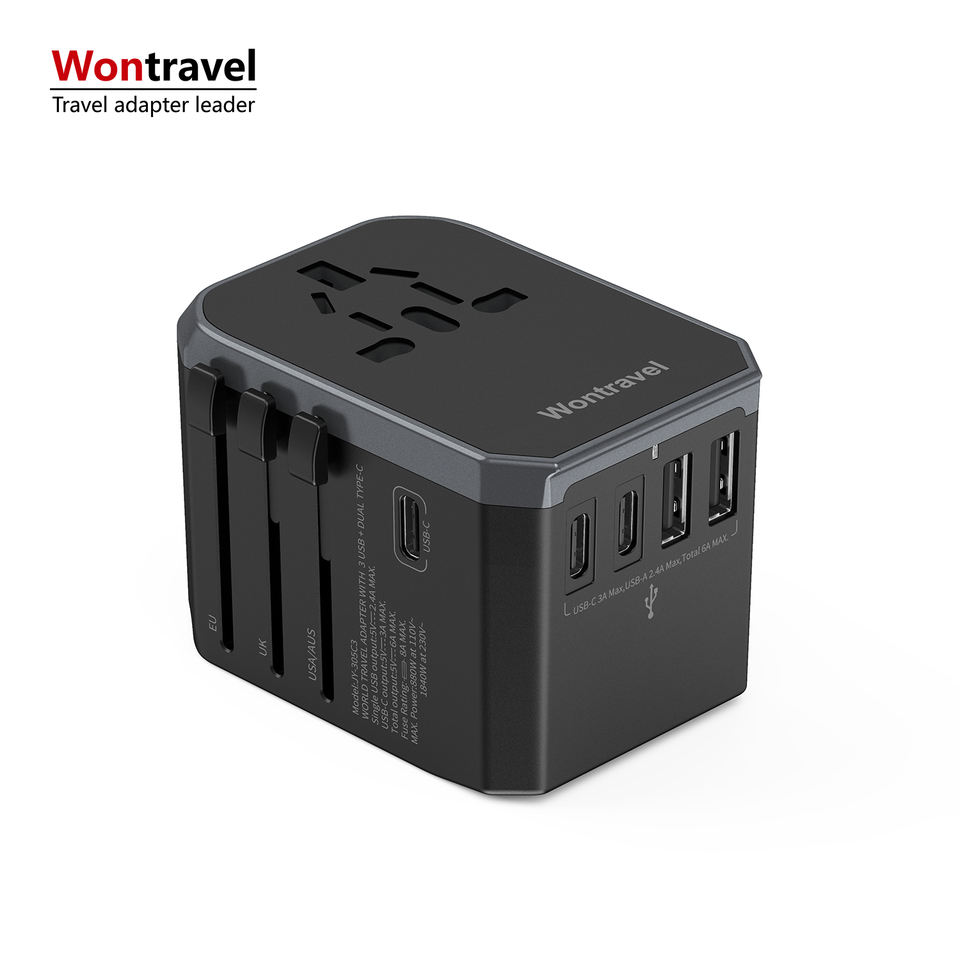 Wontravel OEM ODM 2 USB 3 Type C Electric Plug Power Socket Universal International Travel Adapter