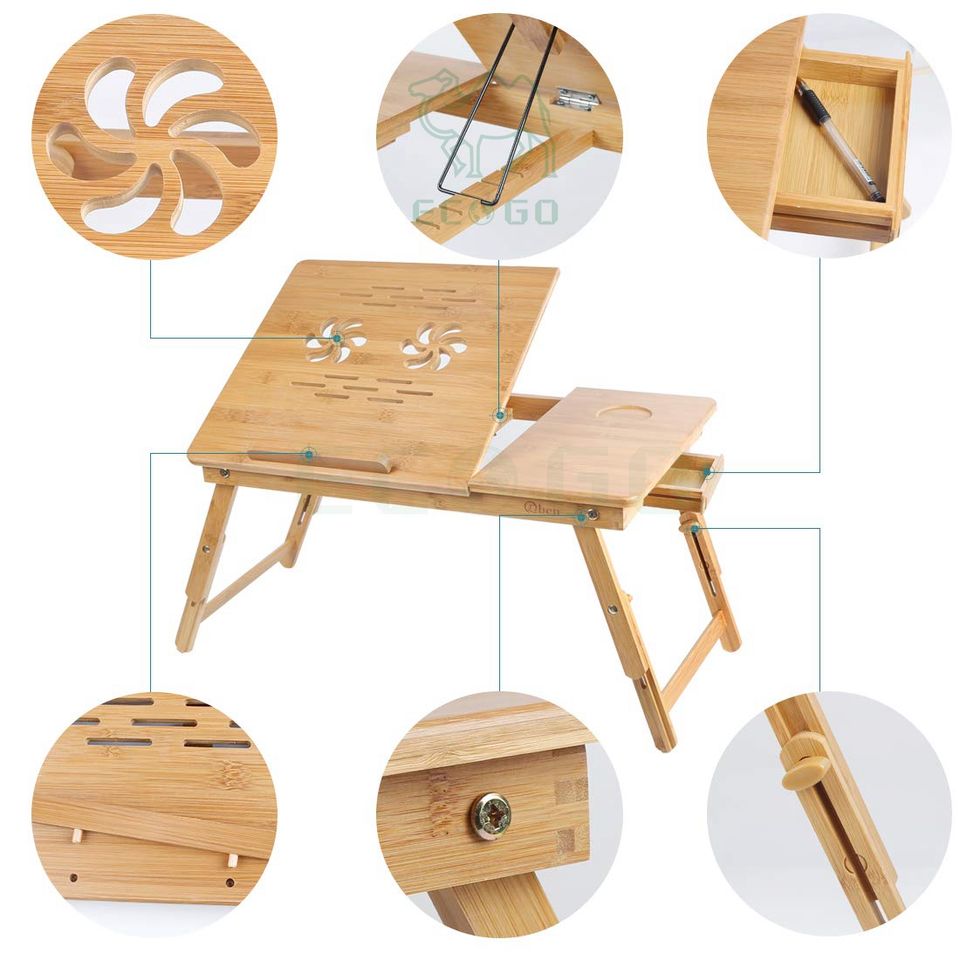 Description:Bamboo Laptop Desk Adjustable Foldable D