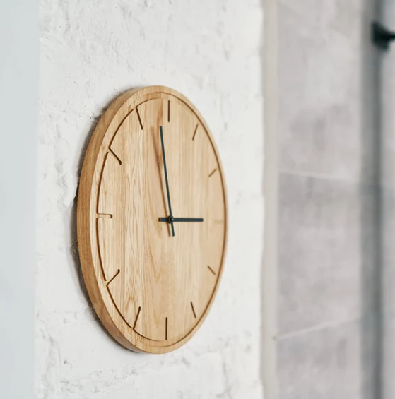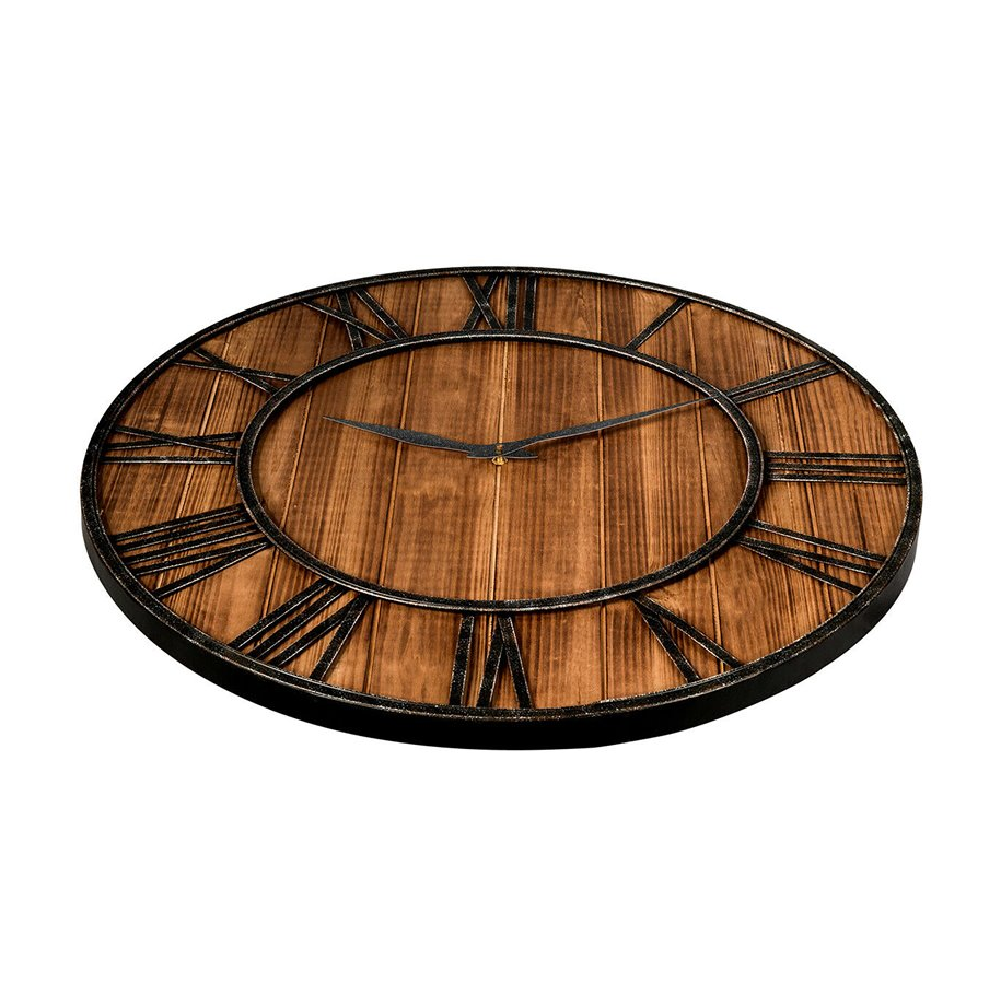 Wood And Metal Wall Clock Round Metal Frame Crafts Modern Simple Style Wooden Wall Decorative Clock