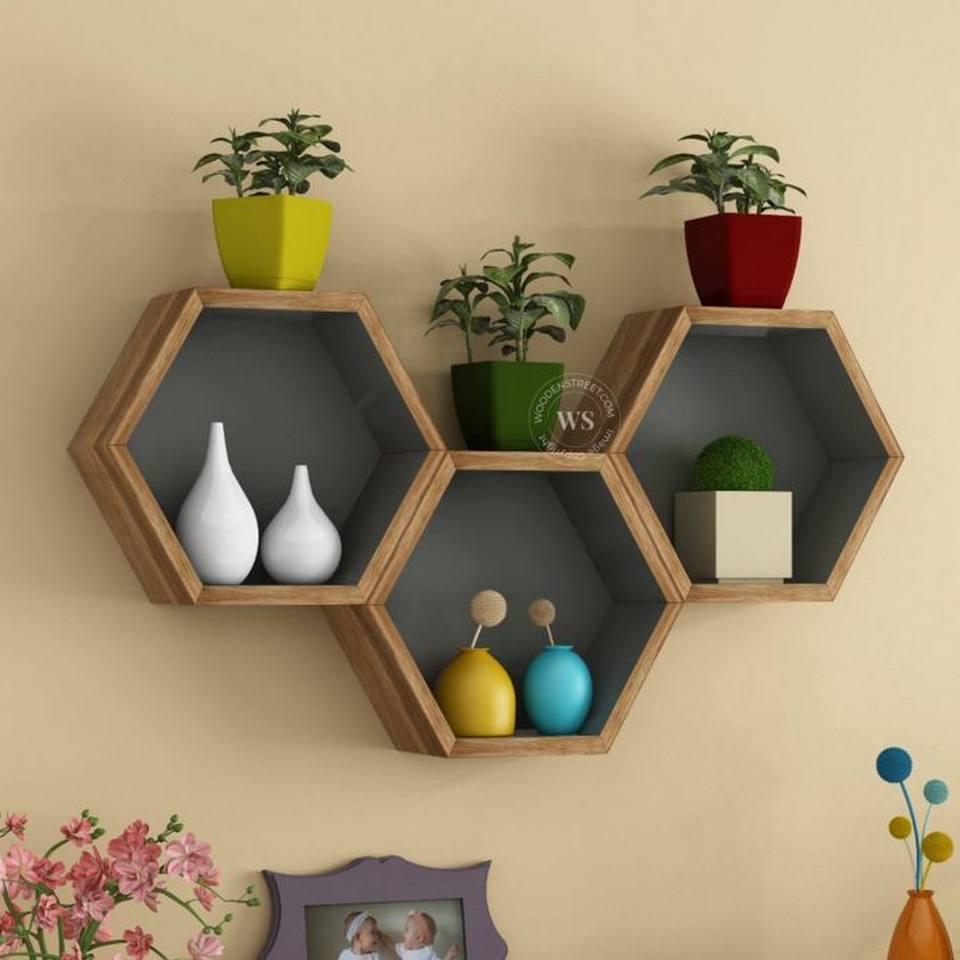 Wood Bookshelf Carved Wooden Wall Mount Storage Rack for Holding Flower Pots Beautiful Wall Art-Buy Now!