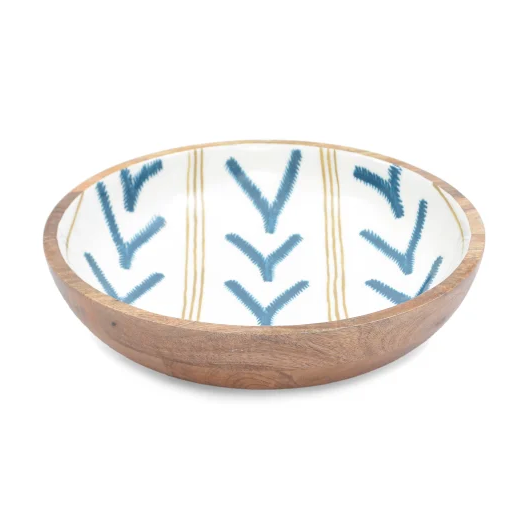 Wood Bowl Enamel Printed Tabletop Decorative Item Vegetable Salad Rice Serving Acacia Wooden Bowls