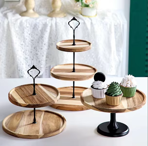 Wood Cake Stand 2 Tier Suspended Wooden Wholesale Wedding Cake Stand Fittings Large 3 Layer 3 Tier Afternoon Tea Cake Stand