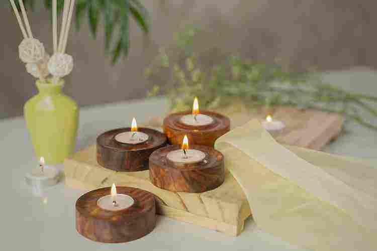 Wood Candle Holders with Matchbox Wedding Gift for Christmas Stand Type Tealight Holder