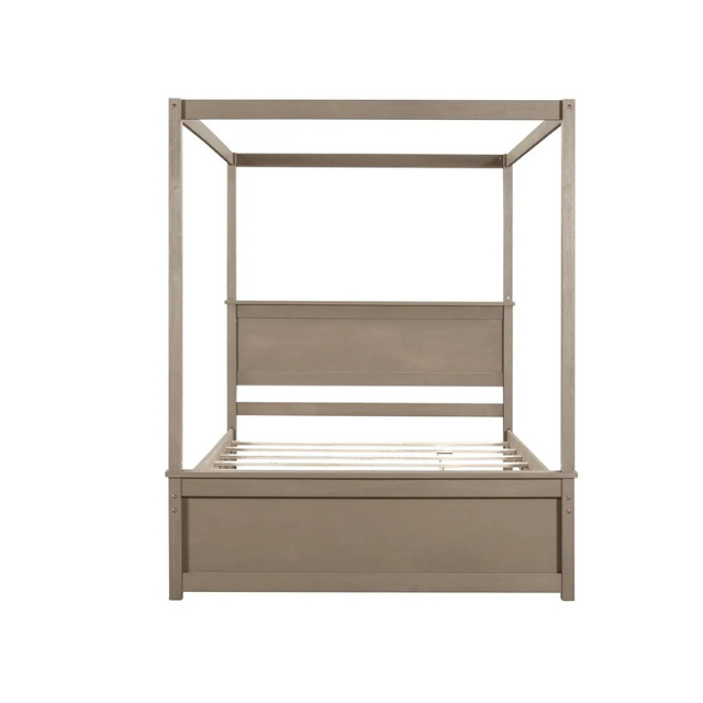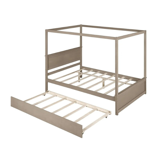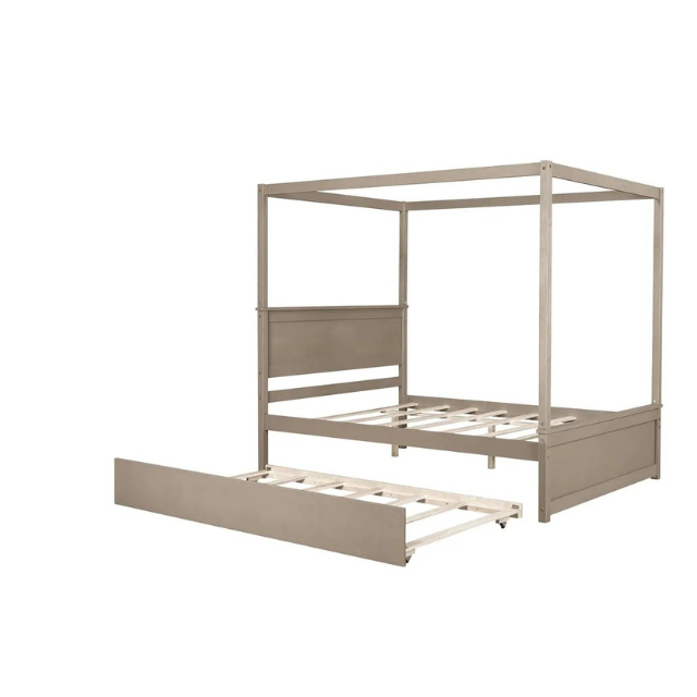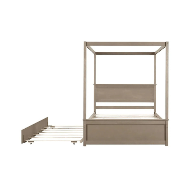 Wood Canopy Bed with Trundle Bed Full Size Brushed Light Brown for Kids OEM Supplier From Vietnam Following Your Brand