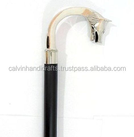 Wood Carved Walking Stick Black Wood Round Solid Brass Handle Walking Stick Men & Women Gift