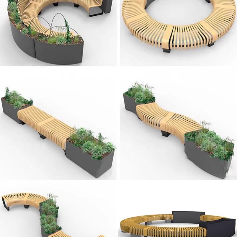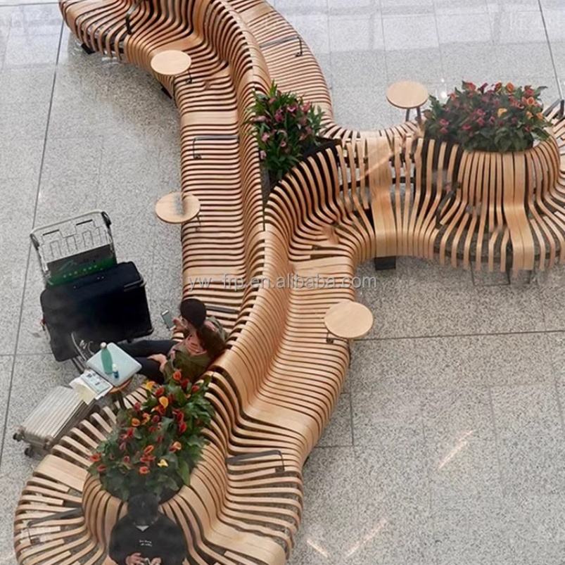 Modern Wood Circle Rest Bench for Park & Mall Outdoor Commercial Waiting Seating