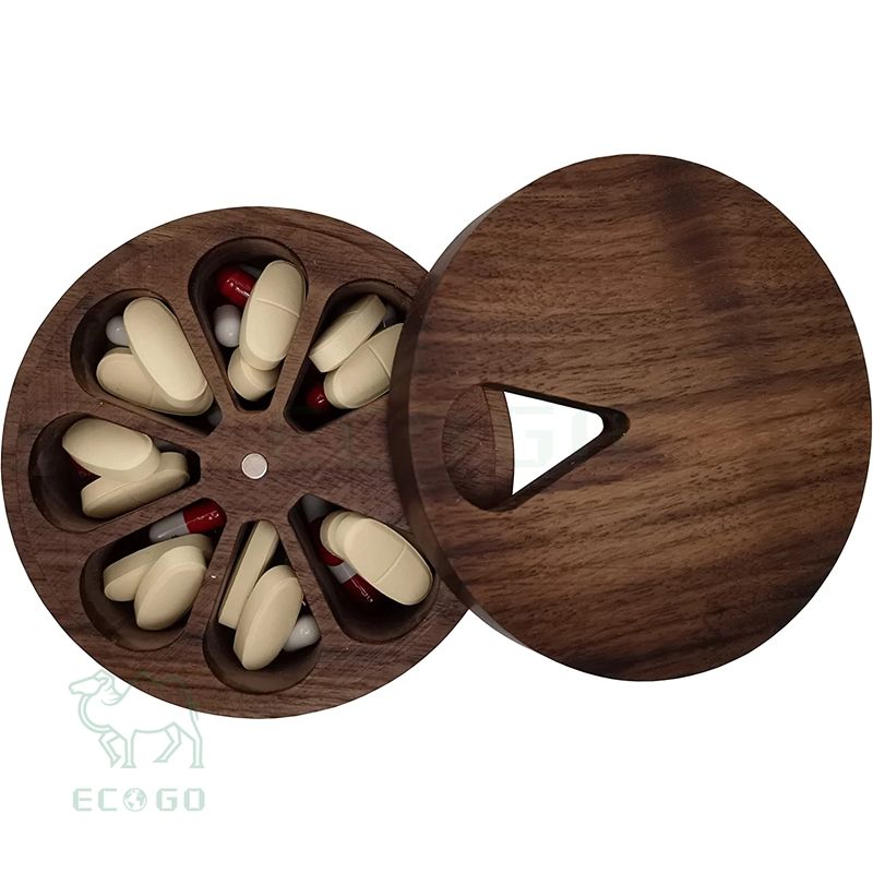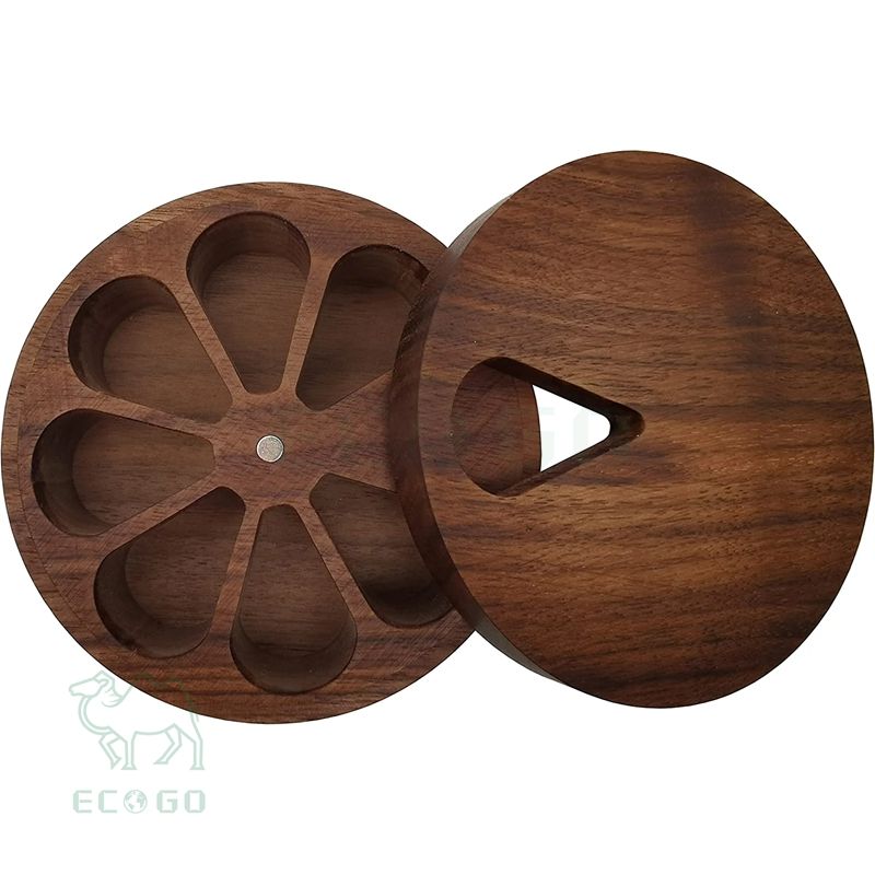 Wood Daily Weekly Medicine Pill Organizer Case Box,Kitchen Salt Spice Cellar Containers, Nail Art Glitters Crystals Organizer