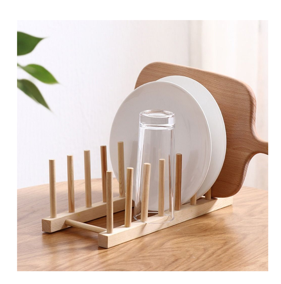 Wood Display Stand Holder Dinnerware Kitchen Storage Organizer Dish Drain Rack Tray Plate Drying Plate Top Price