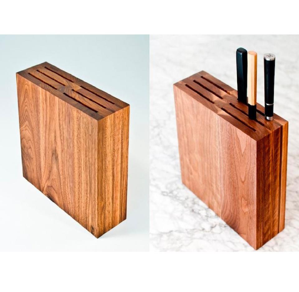 Wood Double Sided Storage Knife Organizer Block in Natural Finished with Wooden Handle for Stylish Kitchen and Knife Accessories