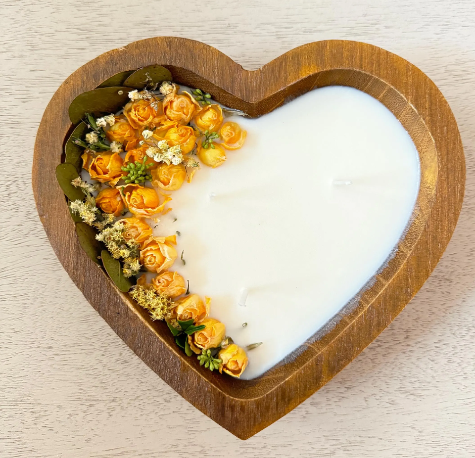 Wood Dough Candle Bowl Custom Fragrance Paulownia Heart Shape Candle Dough Bowl High-Quality Rustic Farmhouse Bowl