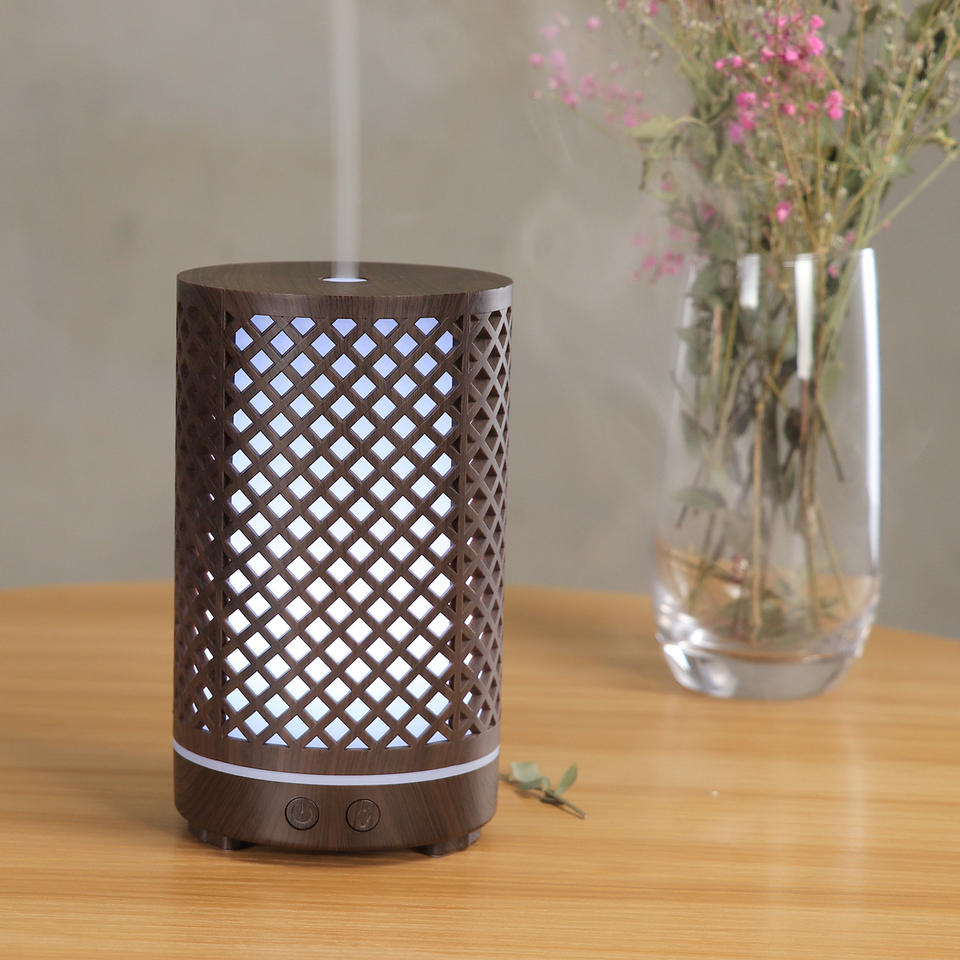 Wood Grain Aroma Diffuser 100ml Ultrasonic Humidifier With Led Light For Home Office Use