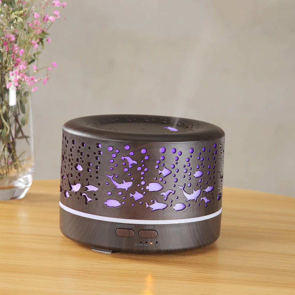 Wood Grain Aroma Diffuser 5V USB Underwater Fish Design Humidifier Home Essential Oil Diffuser With Light And Timer