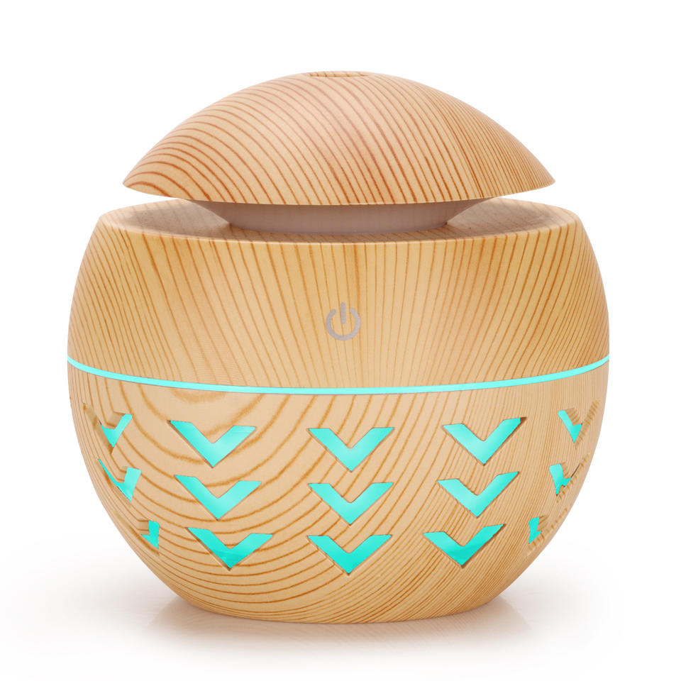 Wood Grain Round Humidifier Mini USB Powered Home Office Desk Night Light 2-8 Hour Timer Less Than 0.5L Capacity