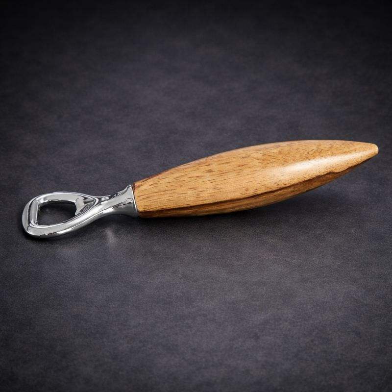 Wood Handle Bottle Opener with Polished Stainless Steel Head Ergonomic Grip Durable Premium Bar Tool for Home Kitchen Party Use