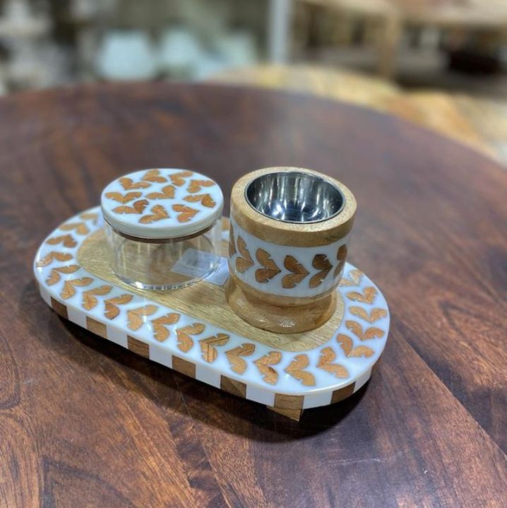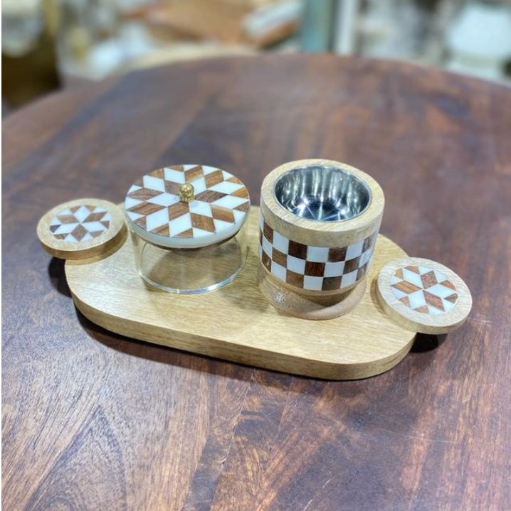 Wood Inlay Work Tray Box Mother Pearl Bakhoor Set Incense Burner Tea Lotus Ramadan Gifts with Competitive Price